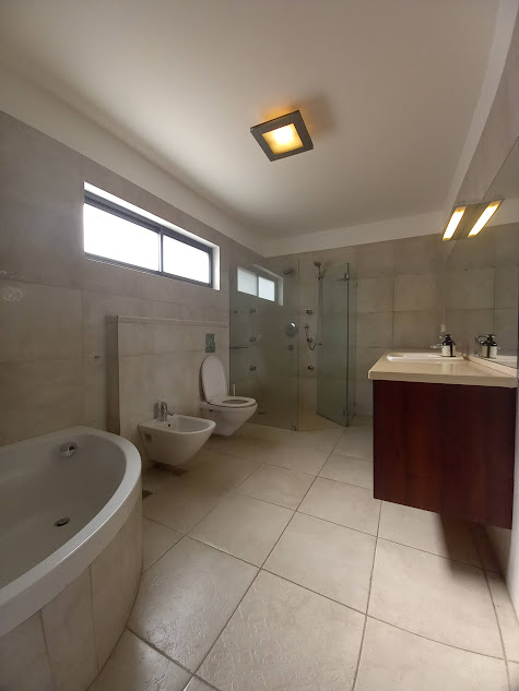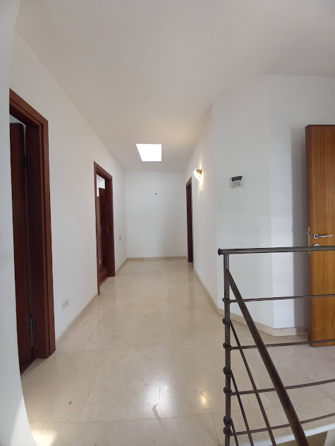 The basement floor contains 2 rooms and a large bathroom. On the entrance floor, there is a welcoming hall, a guest bathroom, a living room, a dining room, and a huge kitchen with access to the garden. The first floor includes a master suite with a huge 3-directional bedroom, a bathroom with an Italian shower and a bathtub, another bedroom with a shower and toilet, and an additional bedroom.