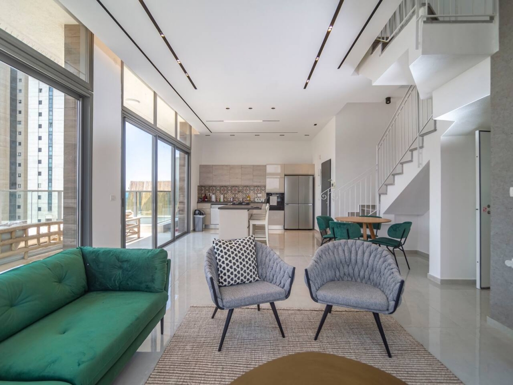 Profitez de superbes vues sur les plages de la Méditerranée depuis le luxueux penthouse avec vue sur la mer à Bat Yam.
