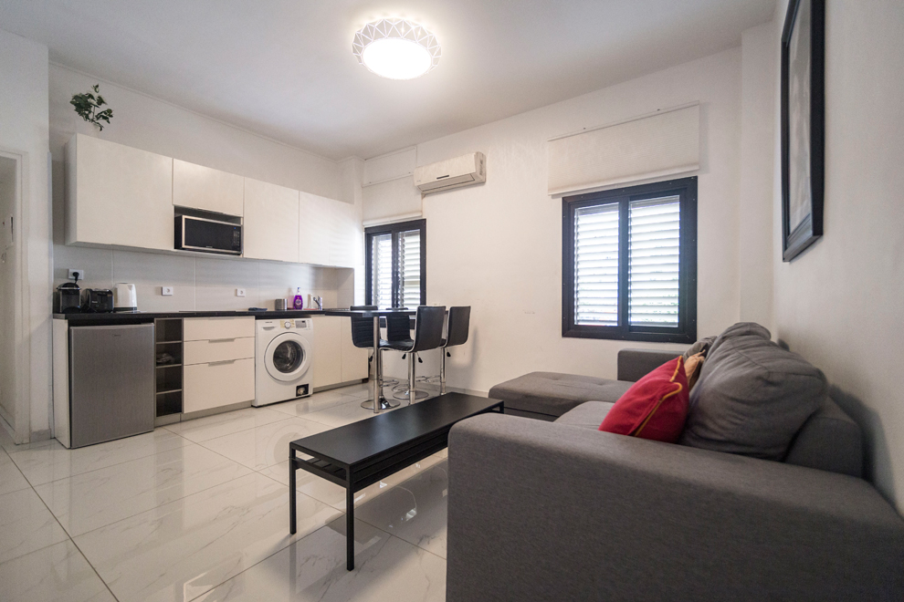 2 חדרים מקסימים מאוד ליד חוף פרישמן, חדר רחצה אחד, מטבח מאובזר, מכונת כביסה ברחוב מאפו, קומה 1, מעלית, מיזוג אוויר