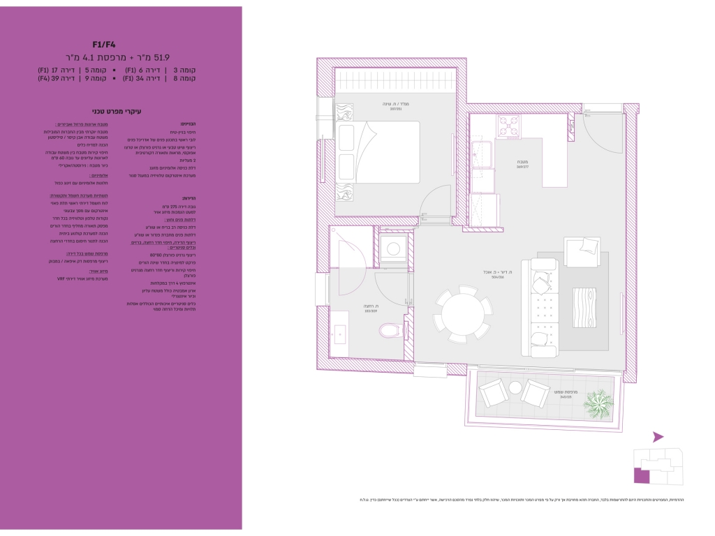 דגם F - החל מ- 3,250,000 ש"ח לקומה 7 - 52.7 מ"ר + 4.2 מ"ר מרפסת - כיוון דרום/מזרח
