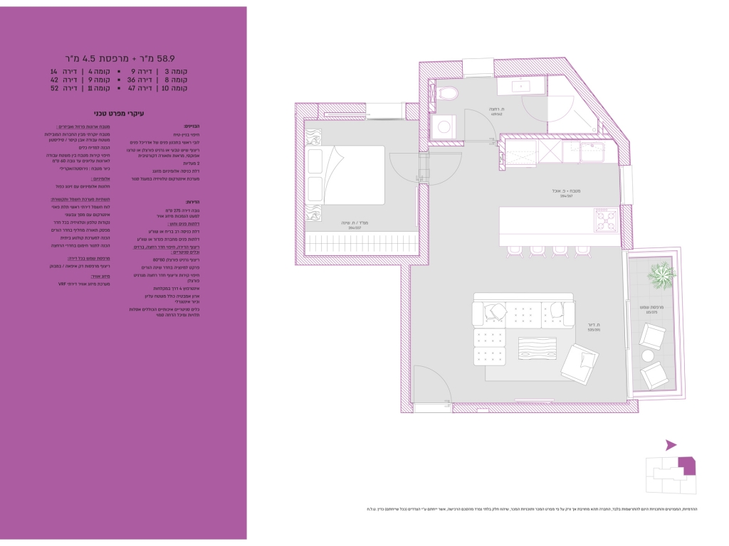 דגם C - החל מ- 3,450,000 ש"ח לקומה 3 - 59.8 מ"ר + 4.6 מ"ר מרפסת - כיוון צפון/מערב