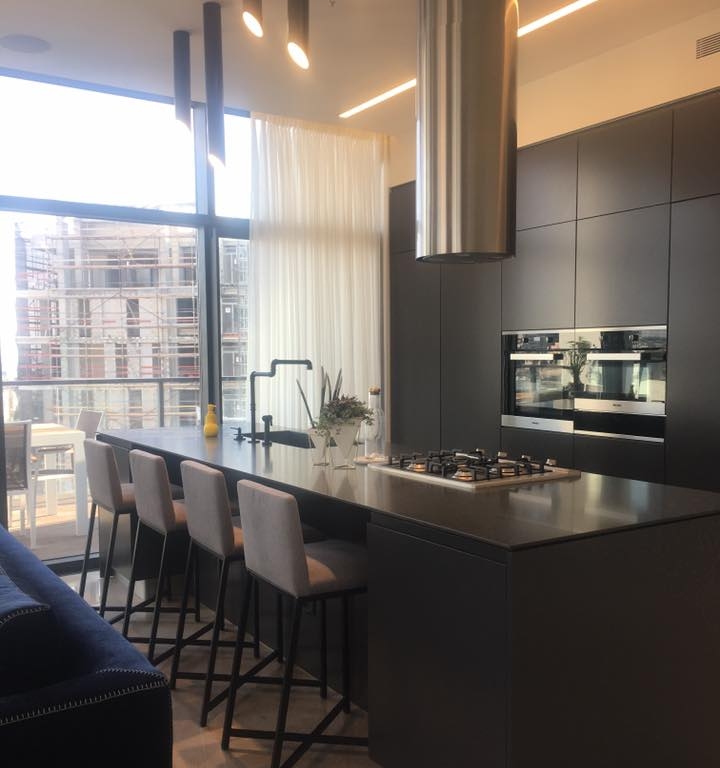 In Building B, a 3-room (no brokerage fee) apartment in the area of 98 sqm + 14 sqm balcony, 7th floor of 8 includes one parking space. Asking price 6,150,000. Occupancy at the end of March 2018.