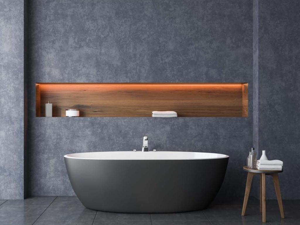 Entrance lobby designed with a seating area, stylish lighting combined with an architectural element